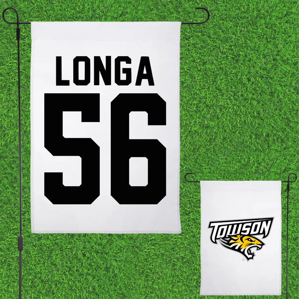 Towson University Football White Garden Flag - #56 Matthieu Longa