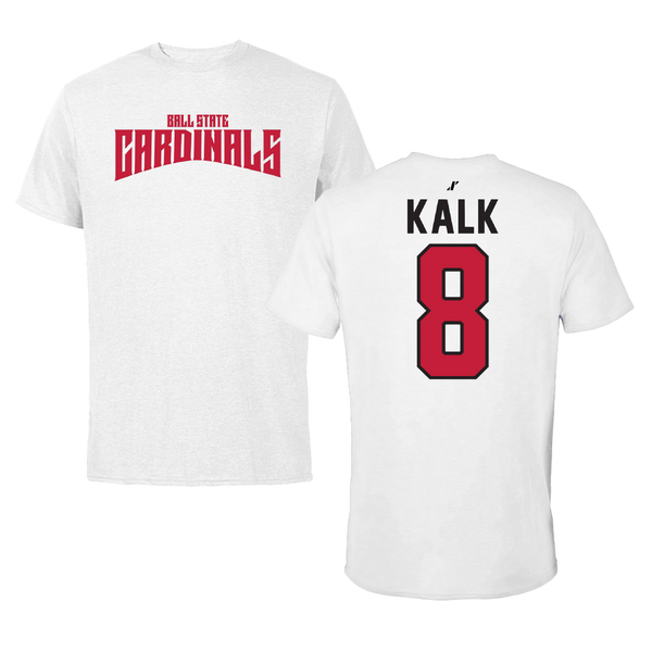 Ball State University Baseball White Classic Tee - #8 Max Kalk