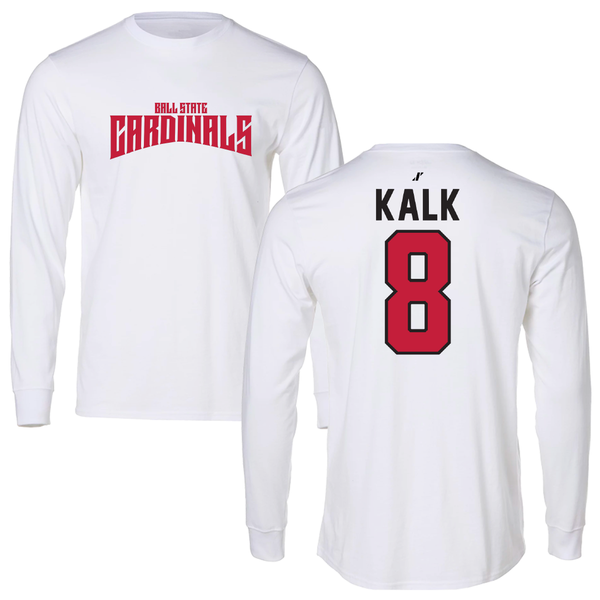 Ball State University Baseball White Classic Long Sleeve - #8 Max Kalk