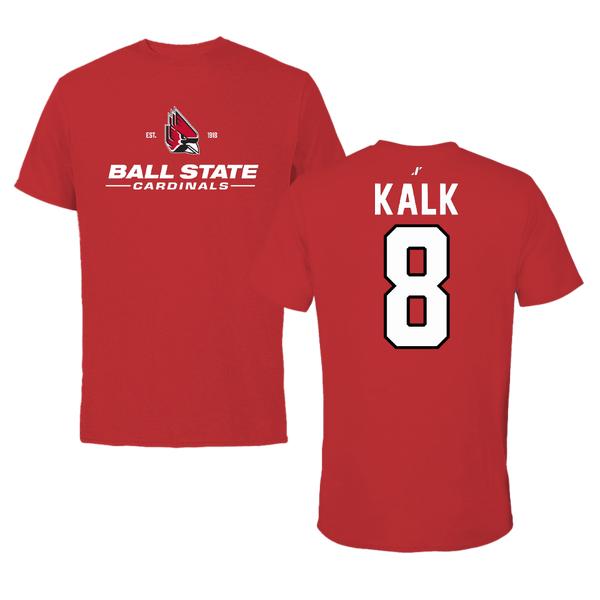 Ball State University Baseball Red General Tee - #8 Max Kalk