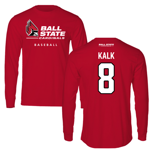 Ball State University Baseball Red Long Sleeve - #8 Max Kalk
