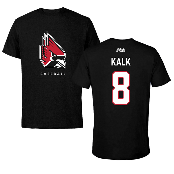 Ball State University Baseball Black Tee - #8 Max Kalk