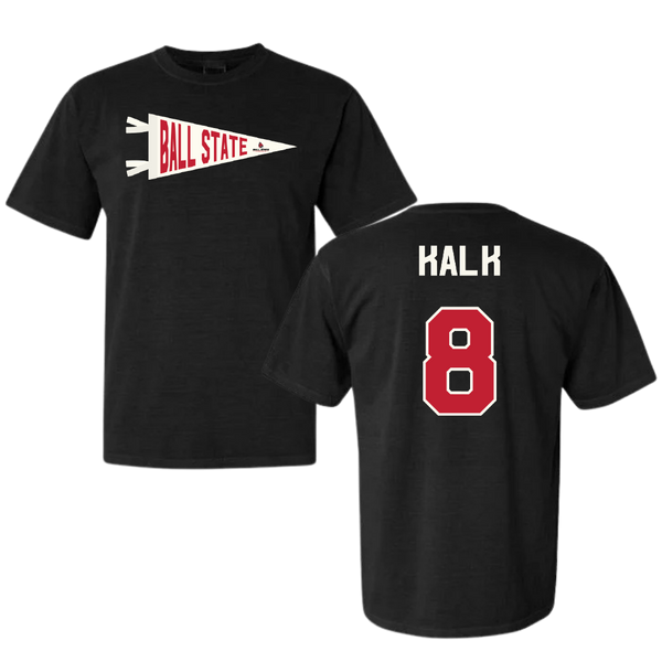 Ball State University Baseball Black Pennant Comfort Colors Tee - #8 Max Kalk