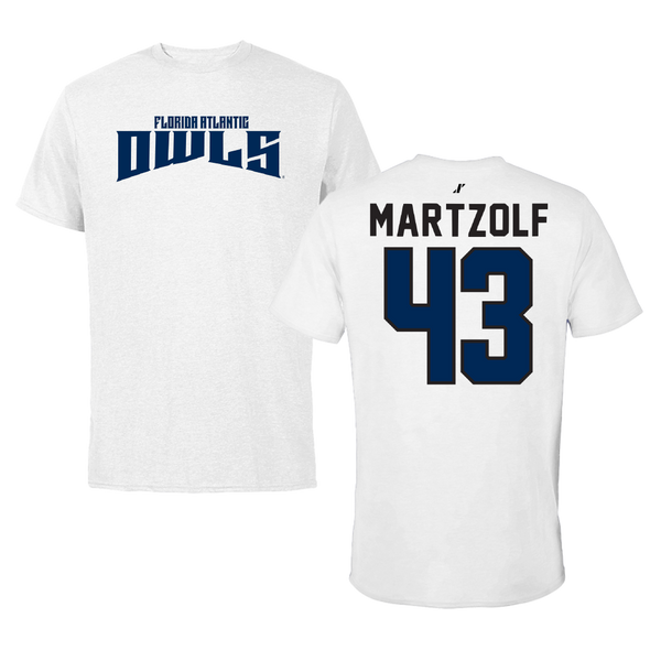 Florida Atlantic University Baseball White Tee - #43 Max Martzolf