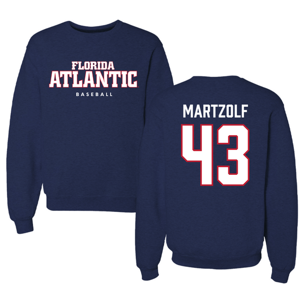 Florida Atlantic University Baseball Navy Crewneck - #43 Max Martzolf