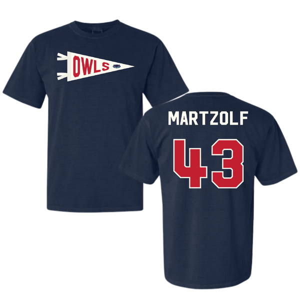 Florida Atlantic University Baseball Navy Mascot Tee - #43 Max Martzolf