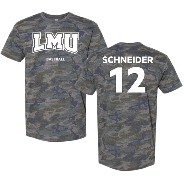 Loyola Marymount University Baseball Vintage Camo Tee - #12 Maxwell Schneider