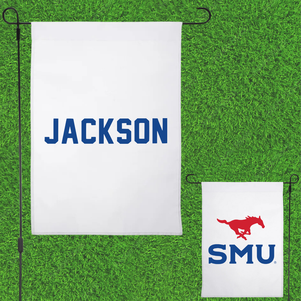 Southern Methodist University TF and XC White Garden Flag - Maykayla Jackson