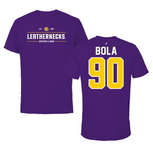 Western Illinois University Football Purple Tee - #90 Mayo Bola