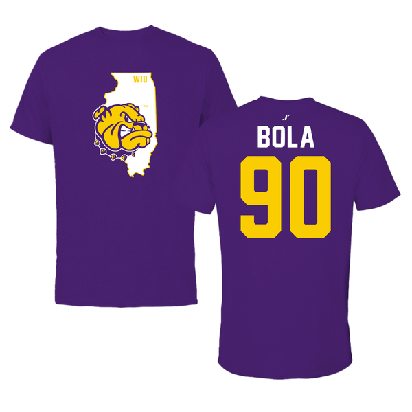 Western Illinois University Football Purple State Tee - #90 Mayo Bola