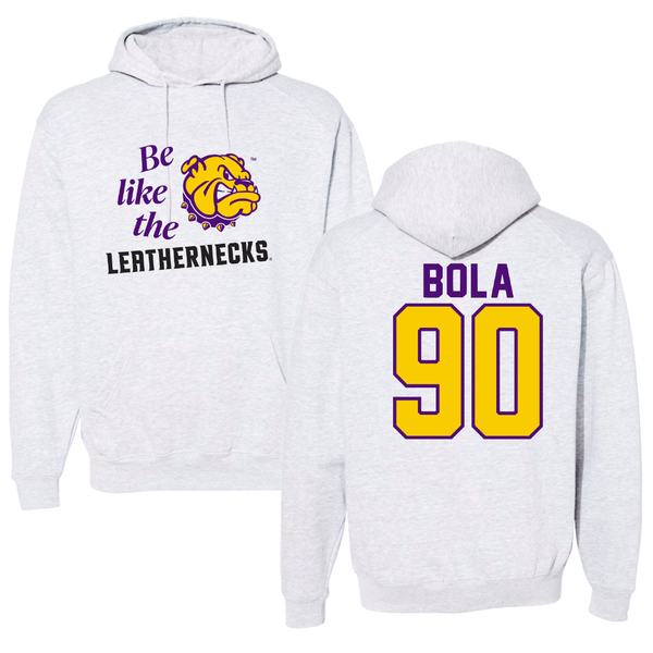 Western Illinois University Football Light Gray Be Like Us Hoodie - #90 Mayo Bola
