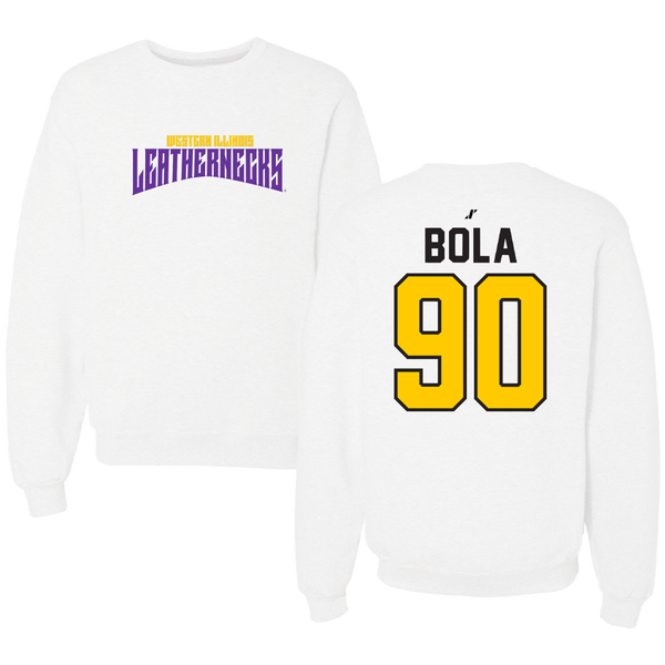 Western Illinois University Football White Classic Crewneck - #90 Mayo Bola