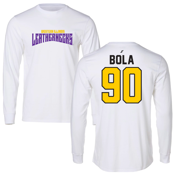 Western Illinois University Football White Classic Long Sleeve - #90 Mayo Bola