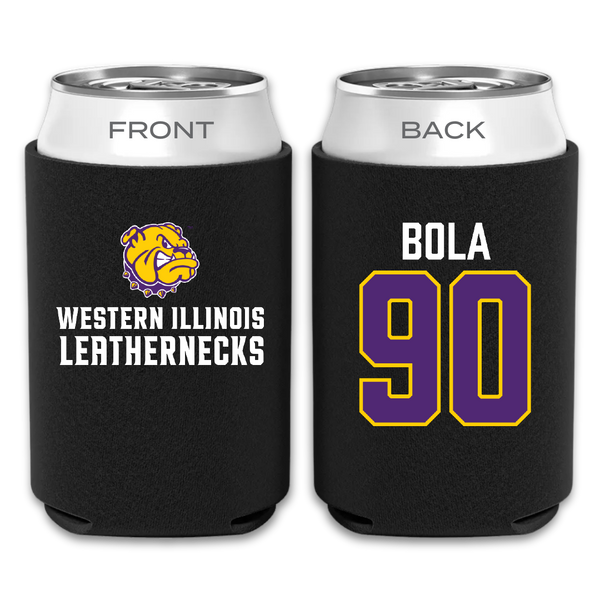 Western Illinois University Football Black Can Cooler - #90 Mayo Bola