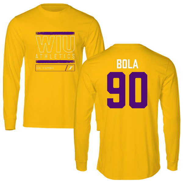 Western Illinois University Football Gold Dominate Long Sleeve - #90 Mayo Bola