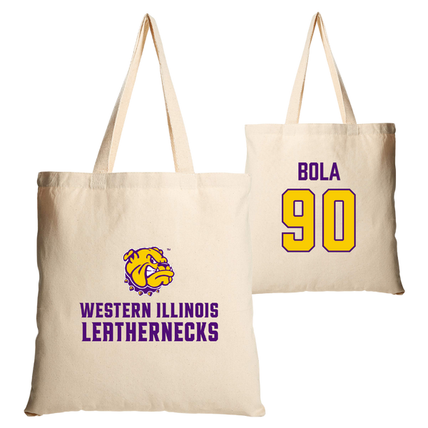 Western Illinois University Football Tan Canvas Tote Bag - #90 Mayo Bola