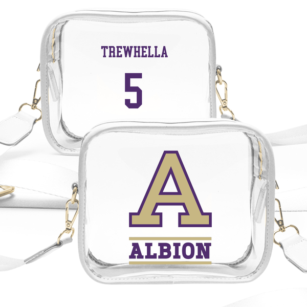 Albion College Basketball (W) White Clear Stadium Bag - #5 Meghan Trewhella