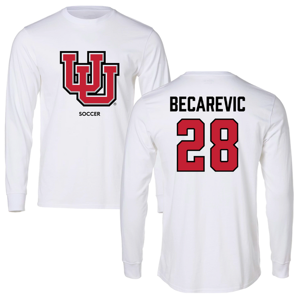 University of Utah Soccer (W) White Block Long Sleeve - #28 Mia Becarevic