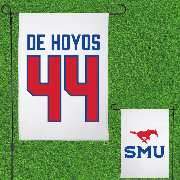 Southern Methodist University Football White Garden Flag - #44 Michael De Hoyos