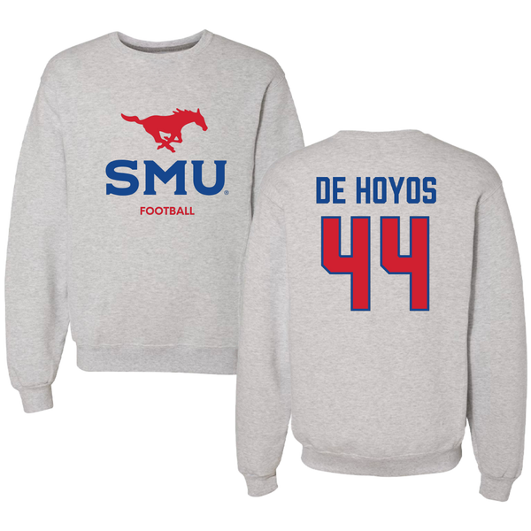 Southern Methodist University Football Light Gray Crewneck - #44 Michael De Hoyos
