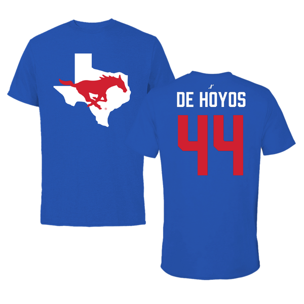 Southern Methodist University Football Blue State Tee - #44 Michael De Hoyos