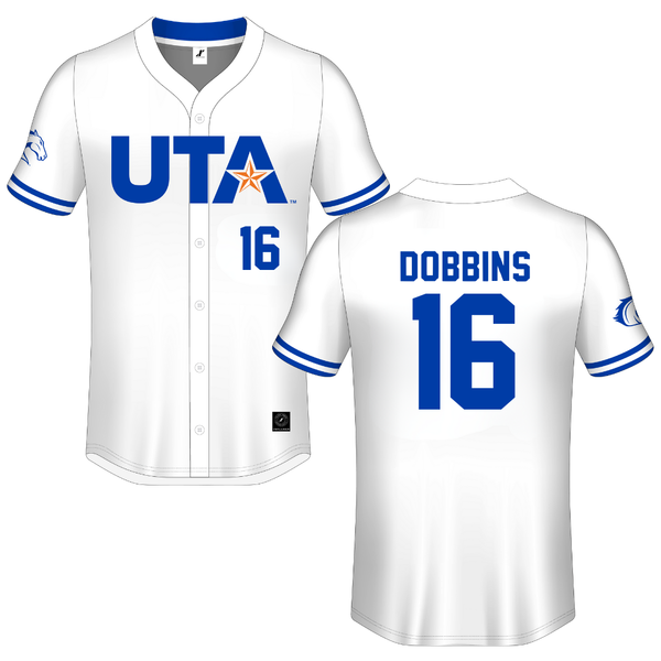 University of Texas at Arlington White Button-Down Jersey - #16 Michael Dobbins