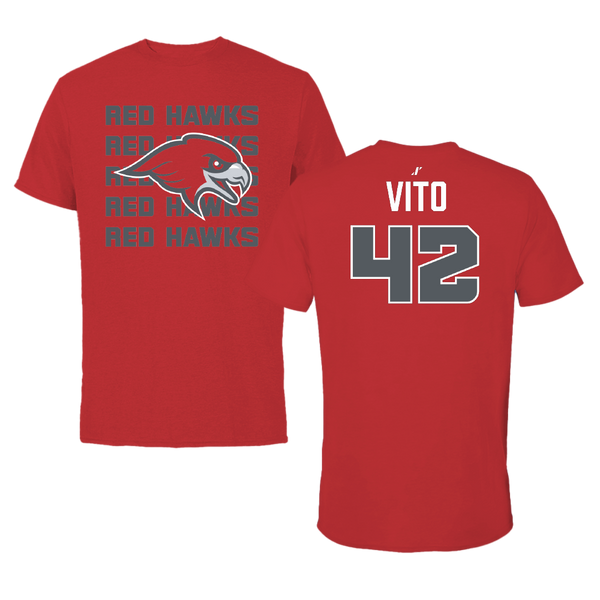 Montclair State University Football Red Tee - #42 Mike Vito
