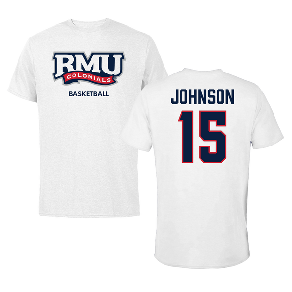 Robert Morris University Basketball White Classic Tee - #15 Natalie Johnson