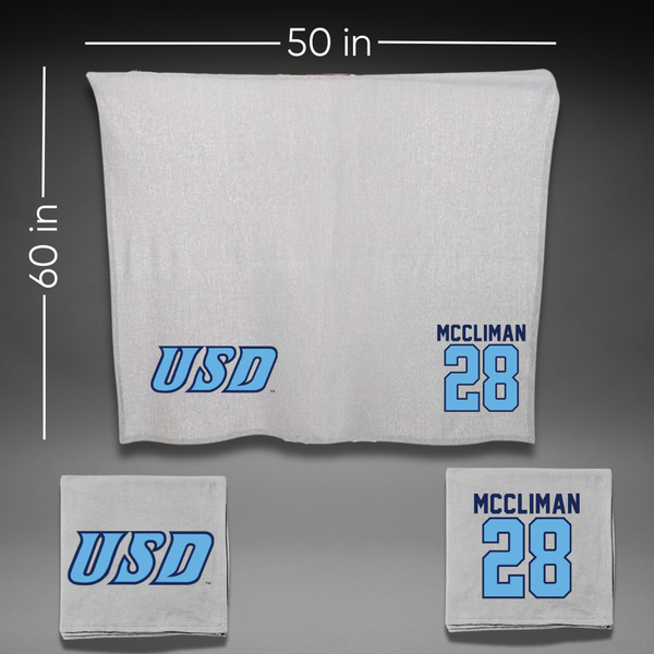 University of San Diego Softball Gray Blanket - #28 Natalie McCliman