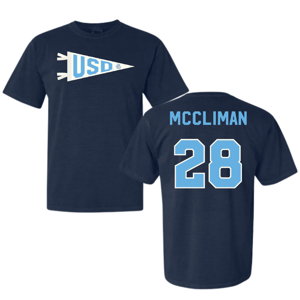 University of San Diego Softball Navy Pennant Comfort Colors Tee - #28 Natalie McCliman