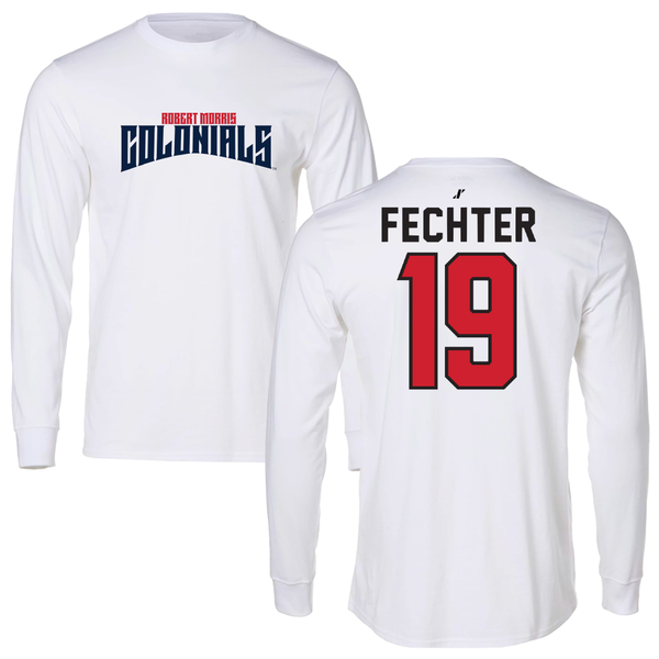 Robert Morris University Lacrosse White Classic Long Sleeve - #19 Nate Fechter