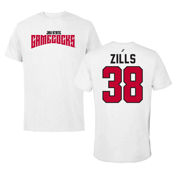 Jacksonville State University Football White Tee - #38 Nate Zills