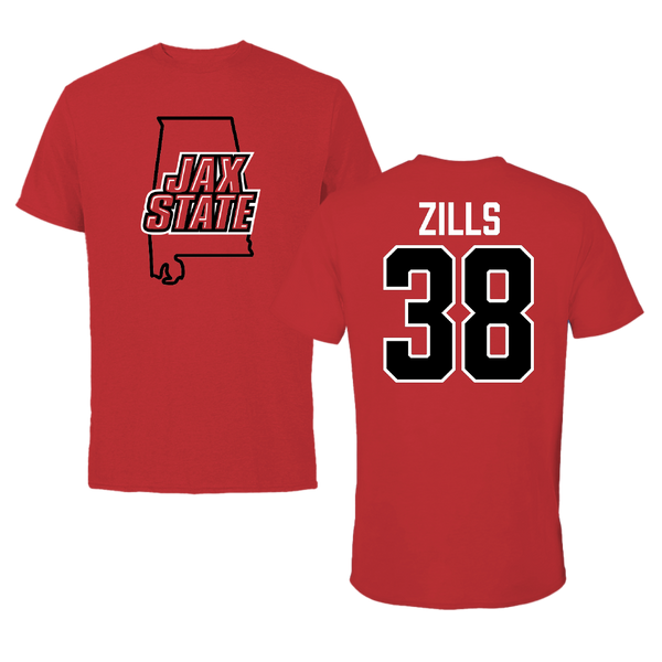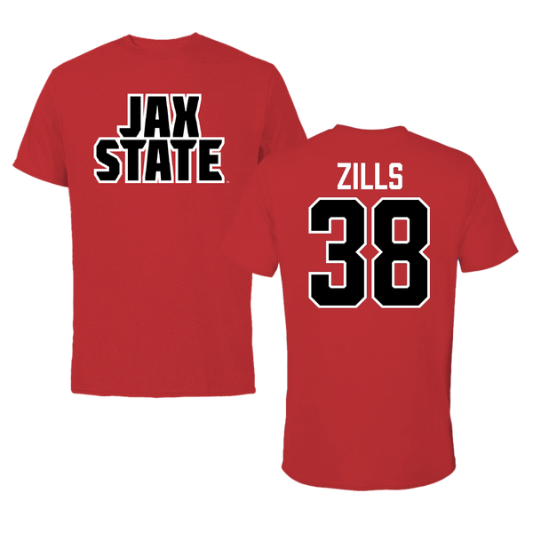 Jacksonville State University Football Red Tee - #38 Nate Zills