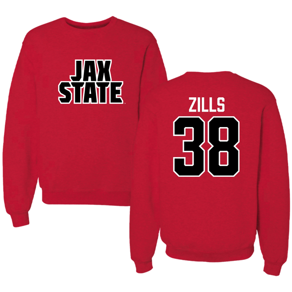 Jacksonville State University Football Red Crewneck - #38 Nate Zills