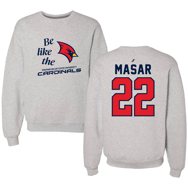 Saginaw Valley State University Baseball Light Gray Be Like Us Crewneck - #22 Nathan Masar