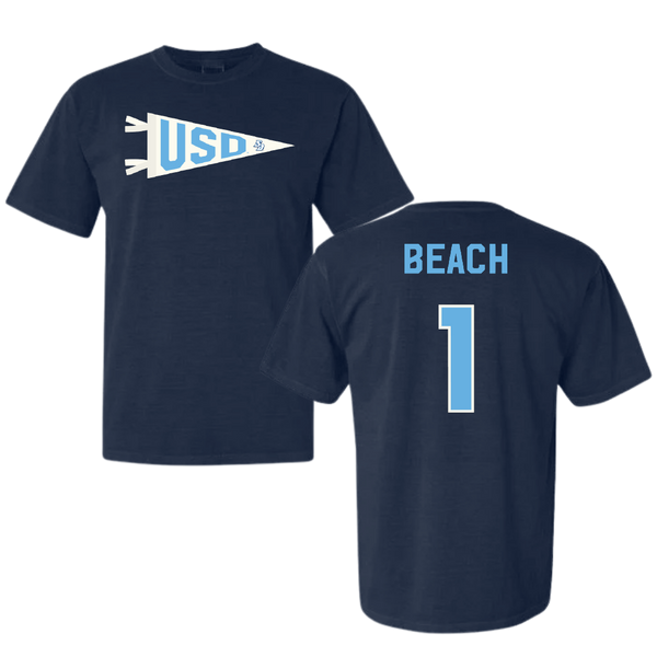 University of San Diego Volleyball Navy Pennant Comfort Colors Tee - #1 Neomi Beach