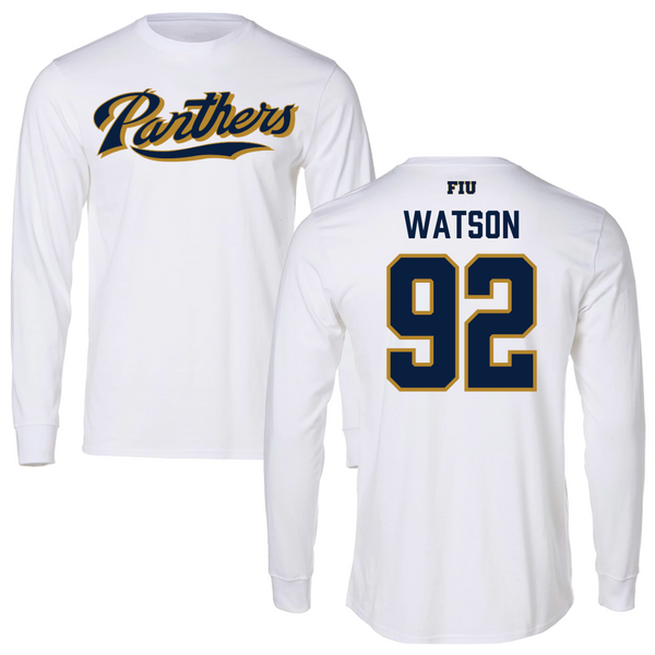 Florida International University Football White Panthers Long Sleeve - #92 Nicholas Watson