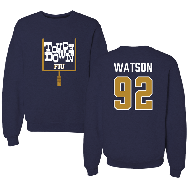 Florida International University Football Navy Touchdown Crewneck - #92 Nicholas Watson