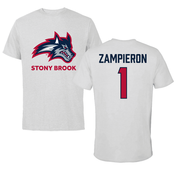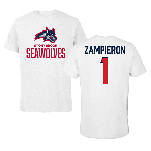 Stony Brook University Baseball White Tee - #1 Nick Zampieron