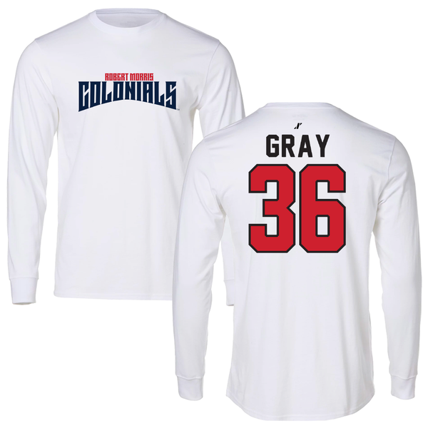 Robert Morris University Football White Mascot Long Sleeve - #36 Ojani Gray