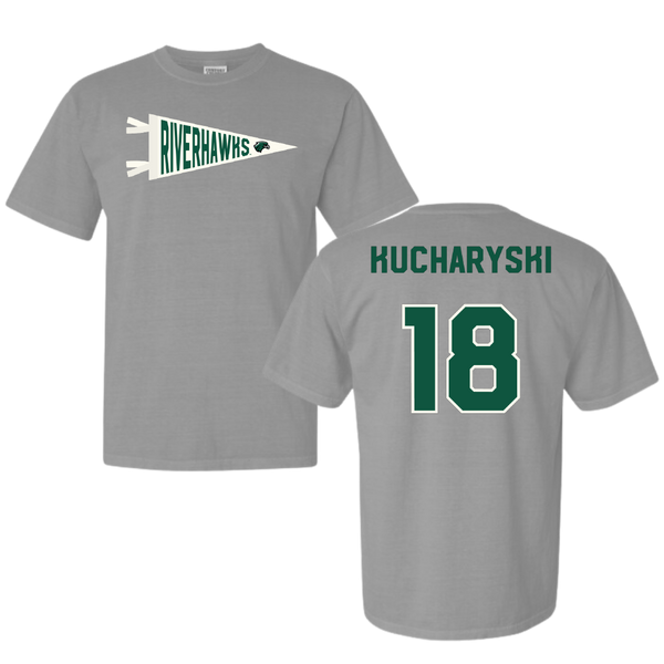 Northeastern State University Soccer Light Gray Pennant Comfort Colors Tee - #18 Olivia Kucharyski