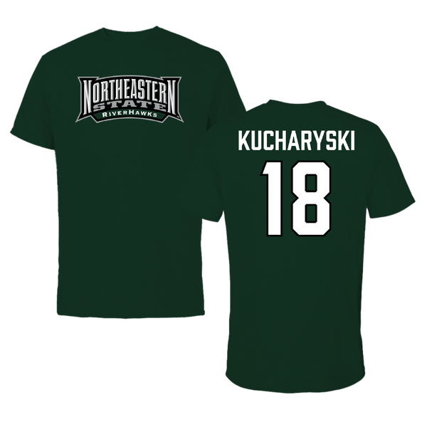 Northeastern State University Soccer Forest Green Block Tee - #18 Olivia Kucharyski