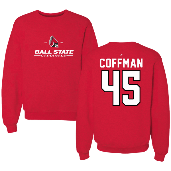 Ball State University Baseball Red General Crewneck - #45 Owen Coffman