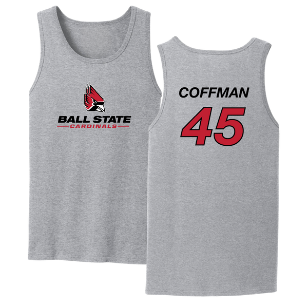 Ball State University Baseball Sport Gray Tank Top - #45 Owen Coffman