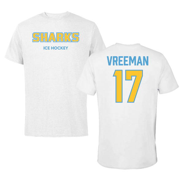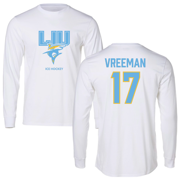 Long Island University Ice Hockey (W) White Sharks Tee - #17 Paige Vreeman