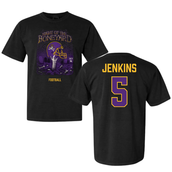 East Carolina University Football Black Night of the Boneyard Comfort Colors Tee - #5 Parker Jenkins