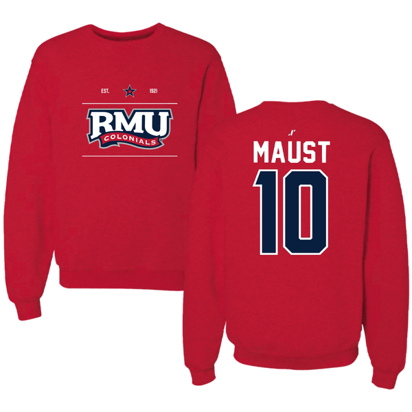 Robert Morris University Ice Hockey Red General Crewneck - #10 Paul Maust