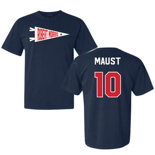 Robert Morris University Ice Hockey Navy Pennant Comfort Colors Tee - #10 Paul Maust