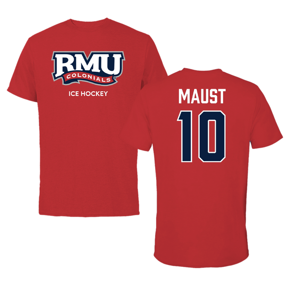 Robert Morris University Ice Hockey Red Tee - #10 Paul Maust