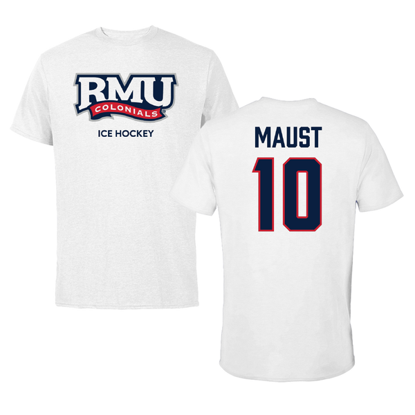 Robert Morris University Ice Hockey White Classic Performance Tee - #10 Paul Maust